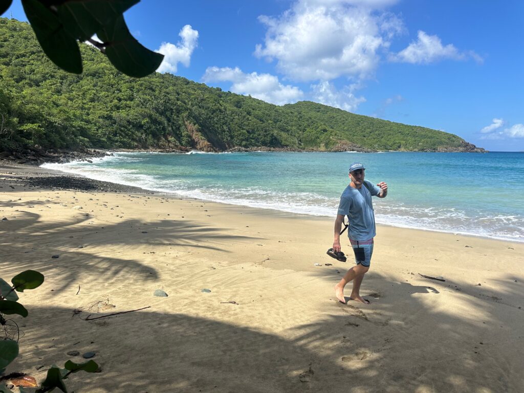 Sailing yachts were well represented at the Virgin Islands Charter Yacht Show in St Thomas, USVI. Our son Jack joined us to inspect sailing and motor vessels gathered at Yacht Haven Marina. He has become even more aquatinted with the show than I have been in recent years. At his last inspection he took a day off for exploring to share a hidden gem that I was totally unaware of even after all my years cruising the VI. Jack was eager to show me an unspoiled bay located on the north west side of St Thomas named Santa Maria, after another explorer’s sailing vessel who discovered the cove at the turn of the sixteenth century. A small Danish ruin left from the Zufriedenheit rum plantation is the only reminder of western civilization as the bay remains as it always was, even before Columbus first arrived. The coconut palms which line the beach are broken only by a fresh water stream which winds down from the rain forest and kisses the salty Caribbean Sea. Jack was so proud to lead me down the tiny path from the main road to what was a highlight of our visit, and a gift from son to father that we will both always treasure.