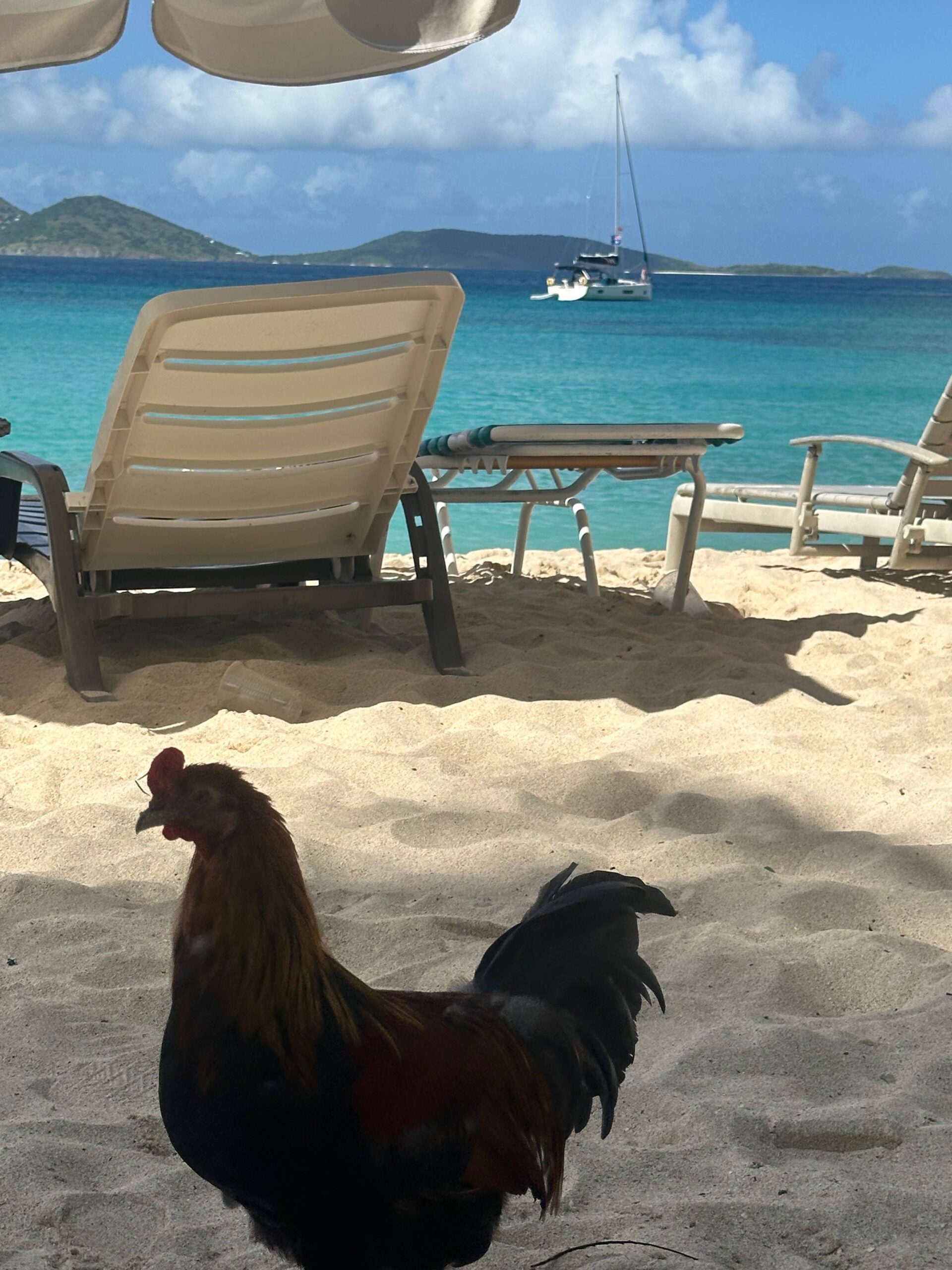 A much larger display of charter yachts were gathered in Nanny Cay, Tortola by the Charter Yacht Society of the British Virgin Islands (CYS). The three of us landed on Tortola before the opening of the show and were able to do some more exploring. Whether arriving by yacht or jeep, Smugglers Cove has always been a special destination for our family. Tortola as a whole and all of the British Virgin Islands island are drenched in pirate lore dating back to the golden age of Buccaneers. During this period around the turn of the eighteenth century Tortola and the BVI served as a Pirate Mecca for the likes of William Kidd, wealthy privateer turned pirate during the 9 years war, followed by Edward Teach, aka Blackbeard, who was relentless in his plundering during Queen Anne’s war. Armed with cannons to the teeth, his prize vessel, Queen Anne’s Revenge was known to utilize Tortola’s Sopers Hole for careening at the island’s west end while the beach around the point was perfect for smuggling. Smugglers Cove today has a gorgeous white beach and is a wonderful spot to spend the day sunning, snorkeling and enjoying a barbecue of local chicken, which we found of the free range variety wandering around oblivious to their fate!